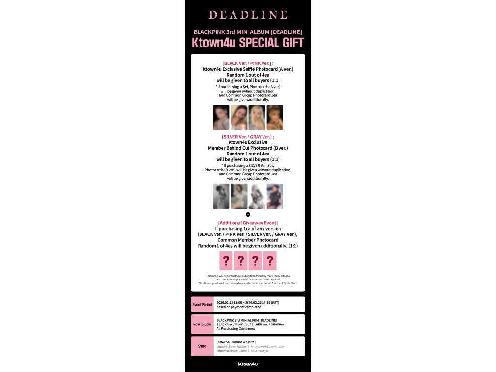 [KTOWN4U POB] BLACKPINK - DEADLINE [3rd Mini Album] (PINK VER.) (PRE-ORDER)