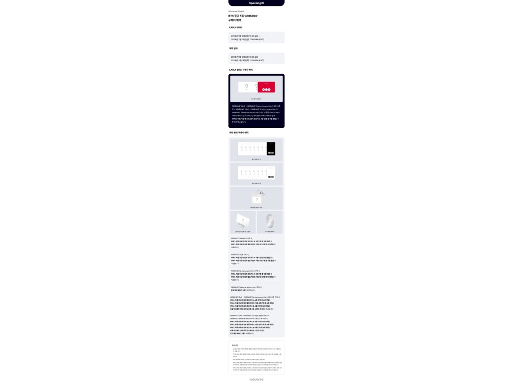 [EARLY BIRD WEVERSE POB] BTS - ARIRANG [5TH ALBUM] (ROOTED IN KOREA VER. + ROOTED IN MUSIC VER. + LIVING LEGEND VER. + WEVERSE ALBUMS VER.) (PRE-ORDER)