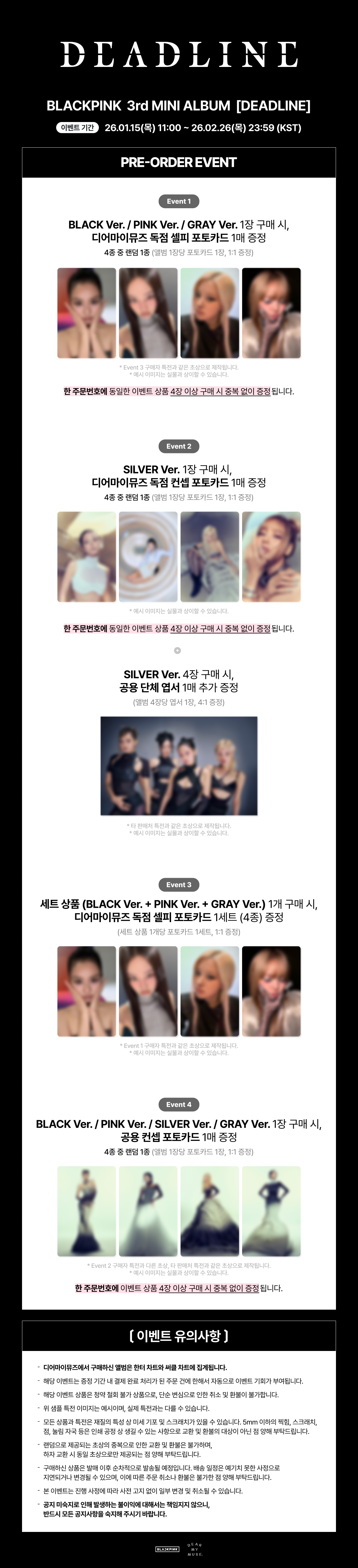 [DEARMYMUSE POB] BLACKPINK - DEADLINE [3RD MINI ALBUM] (GRAY VER.) (PRE-ORDER)