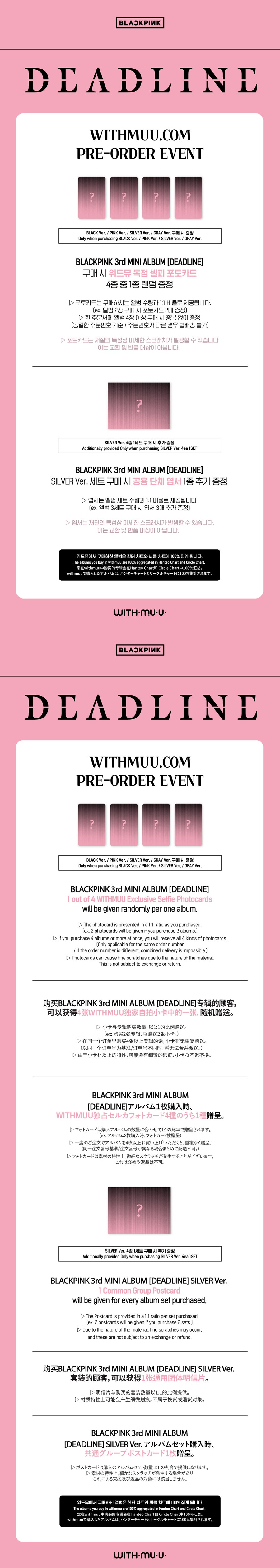 [WITHMUU POB] BLACKPINK - DEADLINE [3RD MINI ALBUM] (SILVER VER.) (PRE-ORDER)