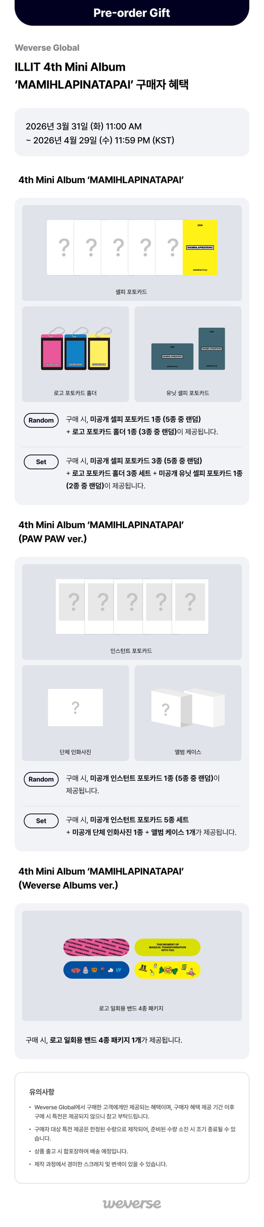 WEVERSE PRE ORDER BENEFIT (when purchasing 1ea random ver.)