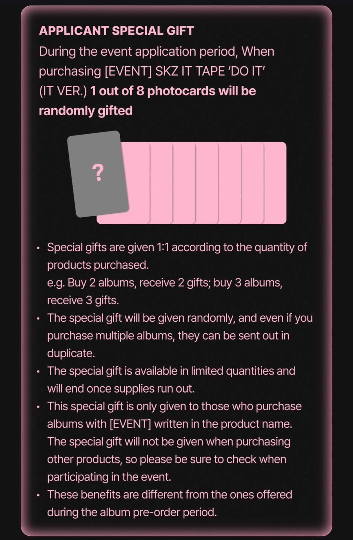 - UNRELEASED PHOTOCARD (Random 1 out of 8)
