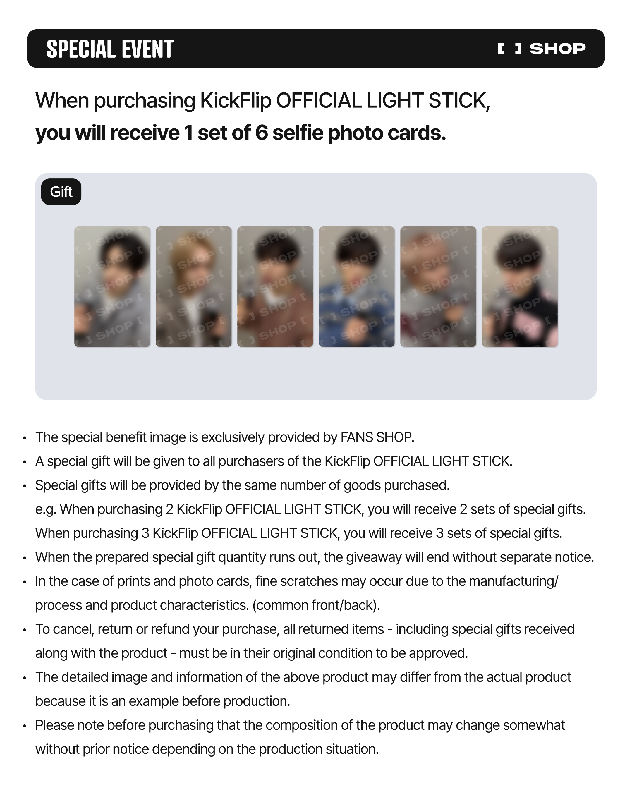 - FANS SHOP SELFIE PHOTOCARD SET (SET = 6ks)